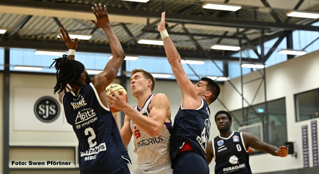 Mit 93:82 (44:44) hat der SYNTAINICS MBC am Mittwochabend beim ProA-Ligisten BG Göttingen sein vorletztes Vorbereitungsspiel für die neue Saison 2025/26 in der easyCredit BBL…