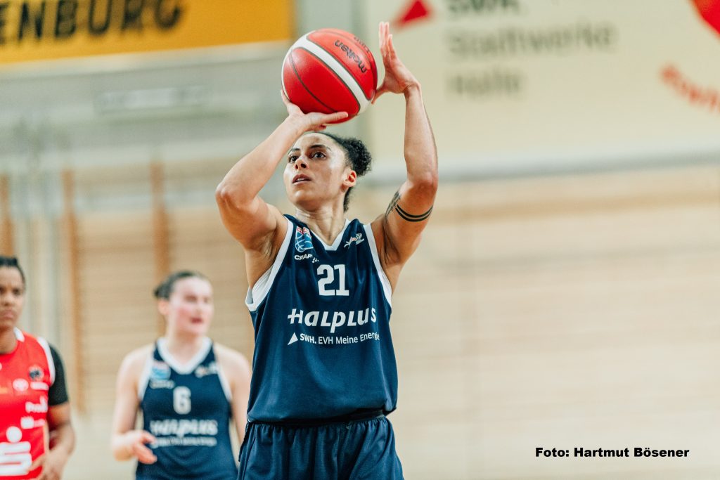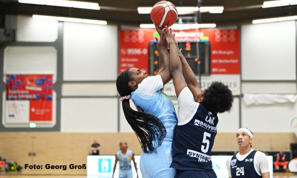 Die Erfolgsserie mit drei Siegen hintereinander in der Toyota DBBL ist dadurch gerissen, in der Tabelle fielen die Hallenserinnen mit einer Bilanz von nun 4:7 Siegen um eine Position auf Rang sieben zurück. Neben der Langzeitverletzten Rachel Arthur (Saisonende nach Kreuzbandriss) musste kurzfristig auch Sona Svetlikova passen, die sich im Abschlusstraining einen Hexenschuss zugezogen hatte. Topscorerin vor 500 Zuschauern war Nicole Brochlitz mit 13 Punkten. Khalis Cain (Foto oben rechts) gelang mit 9 Punkten eine persönliche Saisonbestleistung.