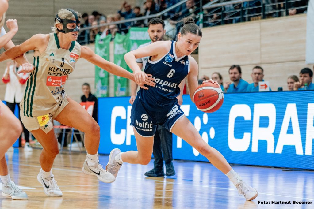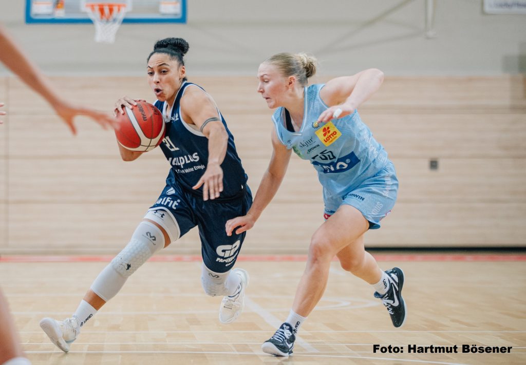 Auch eine deutlich verbesserte Trefferquote und ein Double Double von Katie Shumate (Foto oben) haben unserer Frauenmannschaft nicht zum ersten Saisonsieg in der Toyota DBBL…