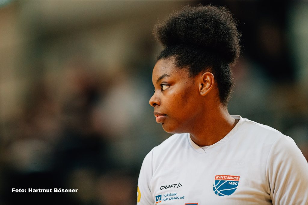 Die Erfolgsserie mit drei Siegen hintereinander in der Toyota DBBL ist dadurch gerissen, in der Tabelle fielen die Hallenserinnen mit einer Bilanz von nun 4:7 Siegen um eine Position auf Rang sieben zurück. Neben der Langzeitverletzten Rachel Arthur (Saisonende nach Kreuzbandriss) musste kurzfristig auch Sona Svetlikova passen, die sich im Abschlusstraining einen Hexenschuss zugezogen hatte. Topscorerin vor 500 Zuschauern war Nicole Brochlitz mit 13 Punkten. Khalis Cain (Foto oben) gelang mit 9 Punkten eine persönliche Saisonbestleistung.