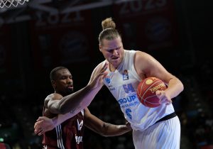 John Bryant #54 von Syntainics MBC, Serge Ibaka #14 von FC Bayern Muenchen