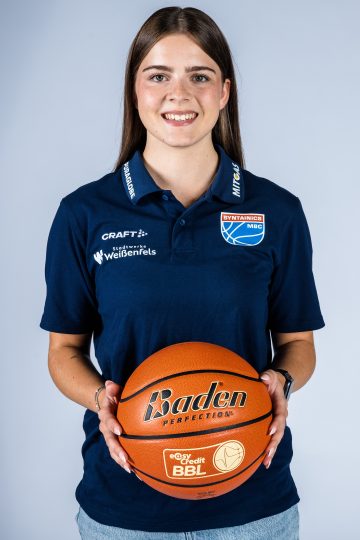 Bereits in der dritten Saison steht Emilia Müller in Diensten des SYNTAINICS MBC. Nach dem Abitur an der Kooperativen Gesamtschule Ulrich von Hutten in Halle und einem eineinhalbjährigem Praktikum in der Geschäftsstelle auf dem Weißenfelder Georgenberg begann sie im April 2025 ein duales Sportbusiness-Management-Fernstudium an der IST-Hochschule in Düsseldorf. Der Tätigkeitsschwerpunkt der gebürtigen Hallenserin beim SYNTAINICS MBC liegt in der Heimspielorganisation der beiden Bundesligamannschaften.