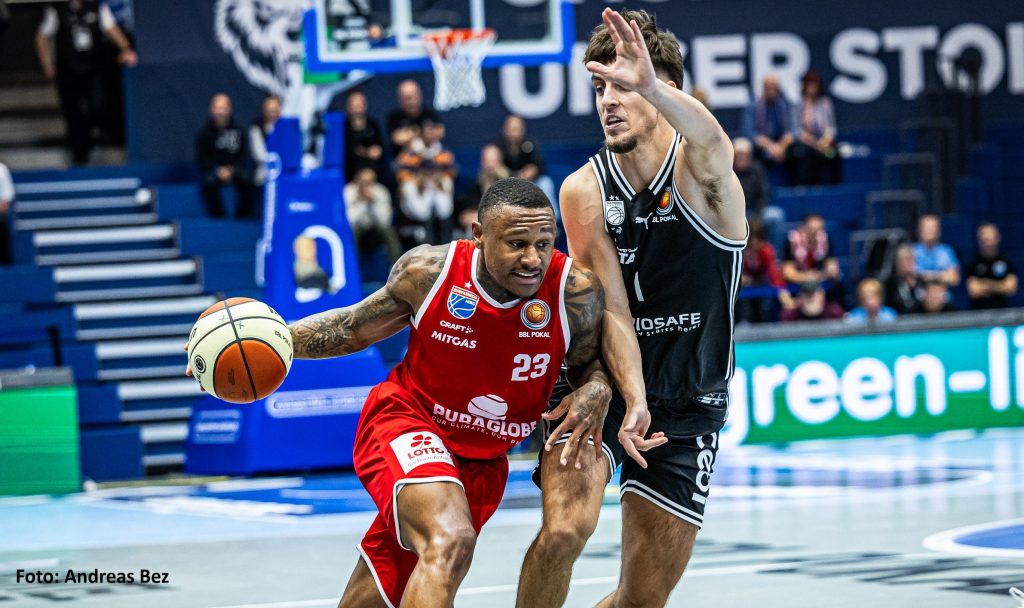 Vor lediglich 1750 Zuschauern in der Stadthalle Weißenfels war die Galavorstellung von Kapitän Charles Callison (Foto oben am Ball) zu wenig. Mit 29 Punkten, 20 davon in der ersten Hälfte, egalisierte der US-Spielmacher seine persönliche Karrierebestleistung aus der easyCredit BBL. Zweistellig punkteten ansonsten nur Khyri Thomas (17) und Marcus Foster (13). Der zu Wochenbeginn nachverpflichtete finnische Spielmacher Perttu Blomgren kam noch nicht zum Einsatz. Für die Mannen von Headcoach Marco Ramondino war es im sechsten Pflichtspiel der Saison die erste Niederlage. Für sie folgt nun eine „englische Woche“ mit dem zweiten Auftritt in der ENBL am Mittwoch (19 Uhr) beim norwegischen Meister Fyllingen Lions, am Sonntag (15 Uhr) wollen sie die Tabellenführung in der easyCredit BBL ebenfalls auswärts bei den SKYLINERS in Frankfurt verteidigen.
